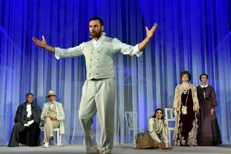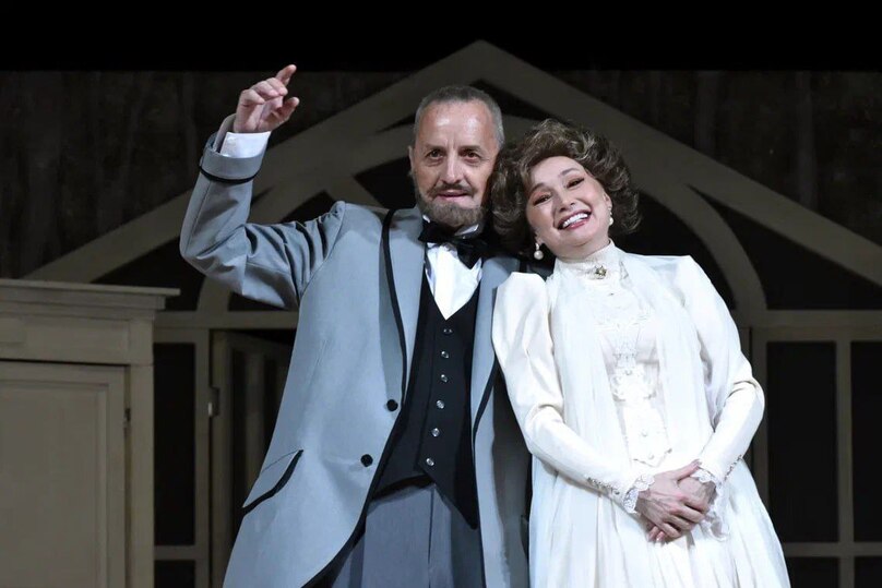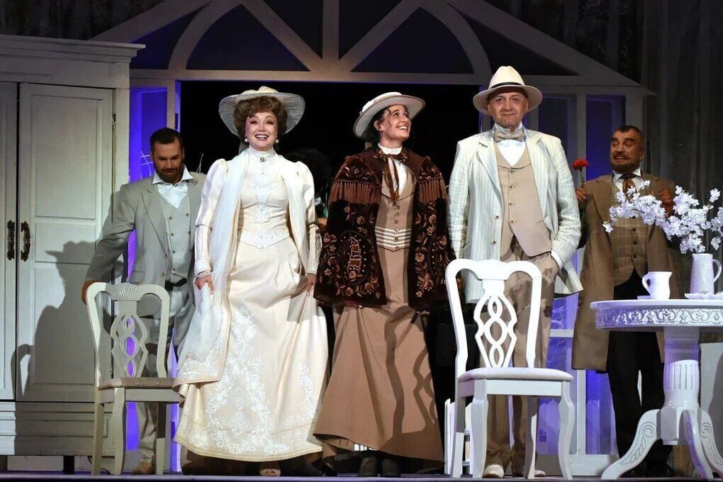 Постановщик Анжелика Добрунова в спектакле «Вишневый сад» в театре им. Горького пошла еще дальше, определив свой сценический вариант как «мелодраматическая комедия». Изменение представляется достаточно существенным и не сводится к отчетливо продемонстрированной ею в прежних крымских постановках любви и мастерству в облегченном жанре. Здесь она произвела заметную карнавализацию действия, существенно поддержанную и художником-постановщиком, интересной и самобытной Златой Цирценс, и большинством актеров и актрис.