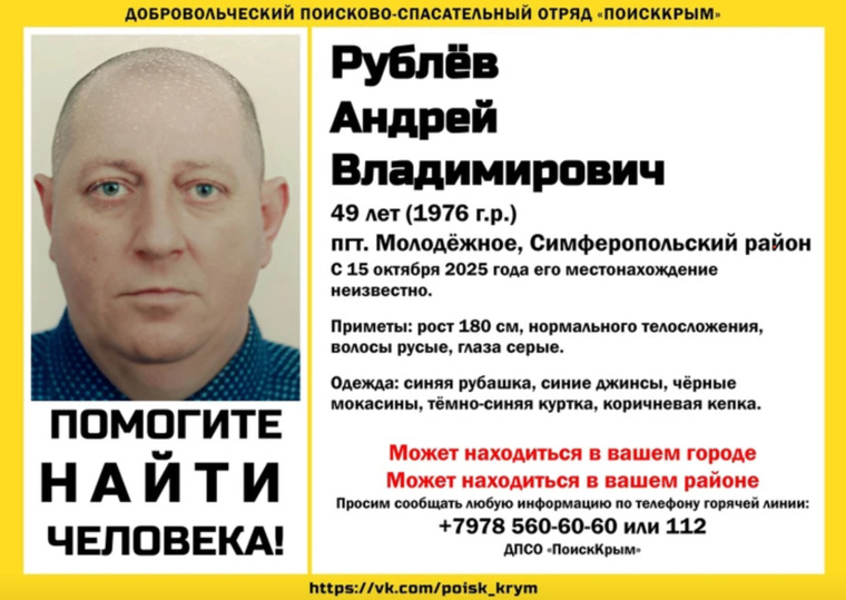 В Симферопольском районе уже почти месяц продолжаются поиски 49-летнего Андрея Рублева из поселка Молодежное. Мужчина ушел на двухдневное дежурство 15 октября и бесследно исчез. Об этом пишет «КП-Крым».