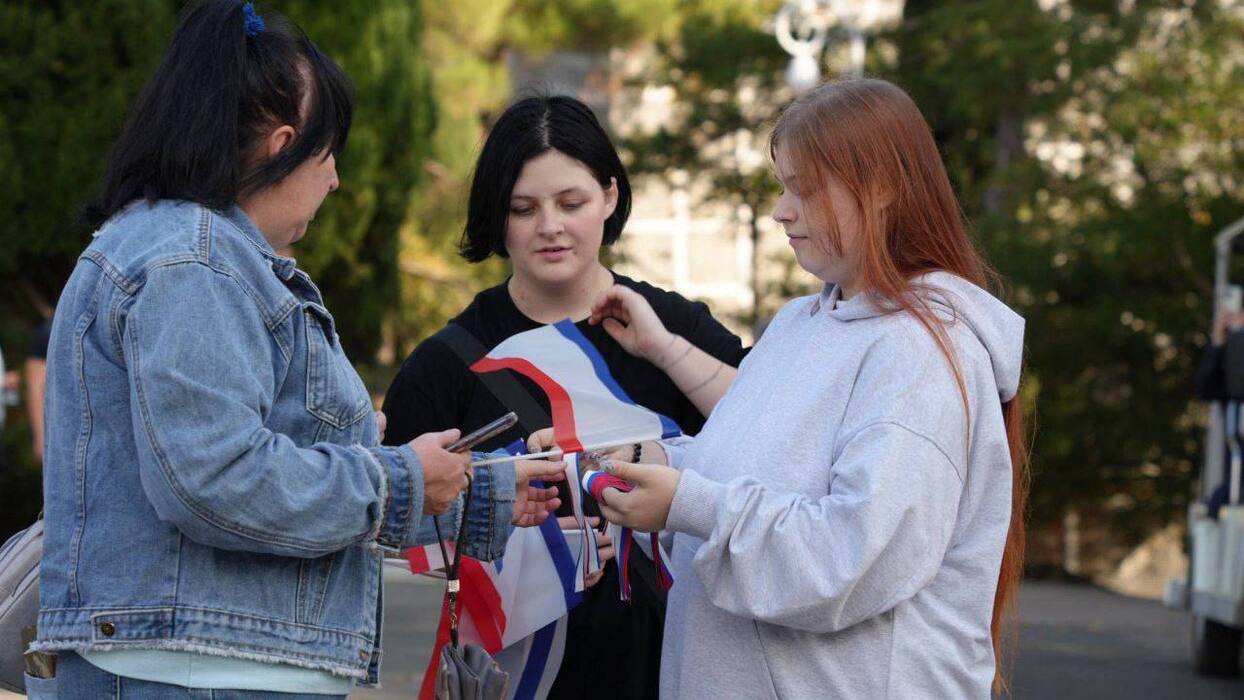 Кроме того, ялтинская молодежь в День народного единства раздали местным жителям и гостям южной столицы Крыма ленточки и флажки в цветах триколора.