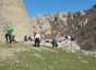 Выехать мы смогли только в 9 часов. Через 2 километра оставили машину на просторной поляне, недалеко от входного портала с надписью «Долина привидений». Когда-то от гостиницы сюда нужно было идти пешком по разбитой тропе. Тогда здесь сидел сердитый кассир и продавал входные билеты в ущелье. Сейчас кассира нет, вход совершенно свободный, грунтовая дорога вполне проходима для любой легковушки. Парковочных полян теперь уже несколько, что говорит о большой популярности маршрутов. Планируя поход на конец ноября, мы надеялись не только на золотое убранство леса, но и на относительное межсезонье. Но утром на полянах уже стояло десятка два машин и несколько микроавтобусов. Склон перед ущельем пестрел многочисленными группами экскурсантов. Самые большие группы - школьники.