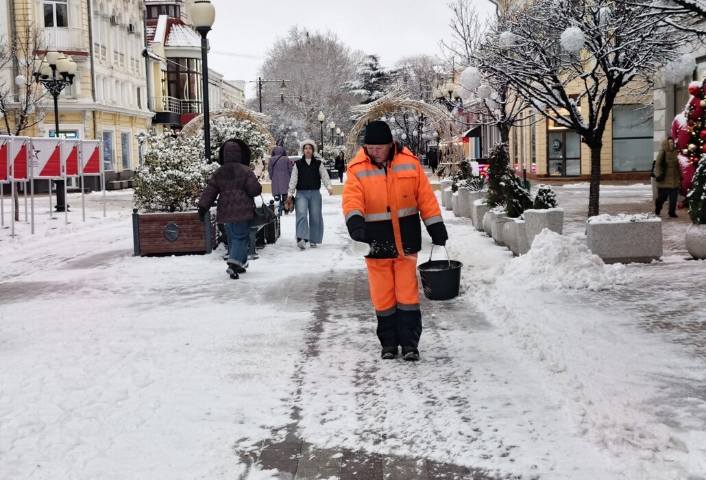 В самом городе на расчистку улиц задействованы 443 дворника, а для обработки дорог заготовлено более 60 тонн противогололёдных материалов.