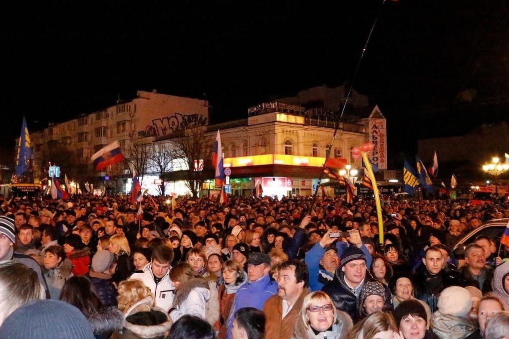 Она не вмещала всех желающих, и соседние улицы тоже были заполнены. Это было живое человеческое море! Крымчане поздравляли друг друга, многие со слезами радости на глазах. Это был не просто праздник, а искреннее всеобщее ликование! «Посмотрите на эти счастливые лица. На центральной площади Симферополя собрались тысячи людей под российскими флагами. Для них это был исторический день», - говорил в своем репортаже журналист Евроньюс Серджио Кантоне.