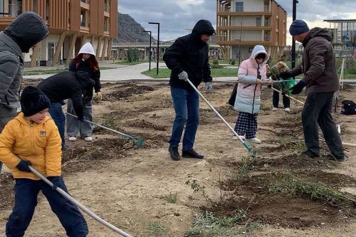Гендиректор компании Иван Гладун как специалист садово-паркового хозяйства оказывает консультационную помощь по высадке и уходу за растениями в прибрежной зоне рядом с мысом Меганом.