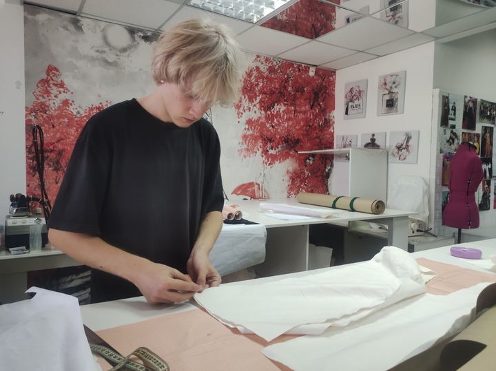 Сосредоточенно делает выкройку Ярослав. Преподаватели отзываются о нем как о талантливом дизайнере с золотыми руками, он толково шьет, и к нему еще будет стоять очередь из желающих получить эксклюзивную вещь. Ярослав немногословен, он не отрывается от работы. Удается узнать, что в семье шила мама, видимо, гены передались и сыну. Ему нравится шить брюки, причем неважно - мужские или женские.