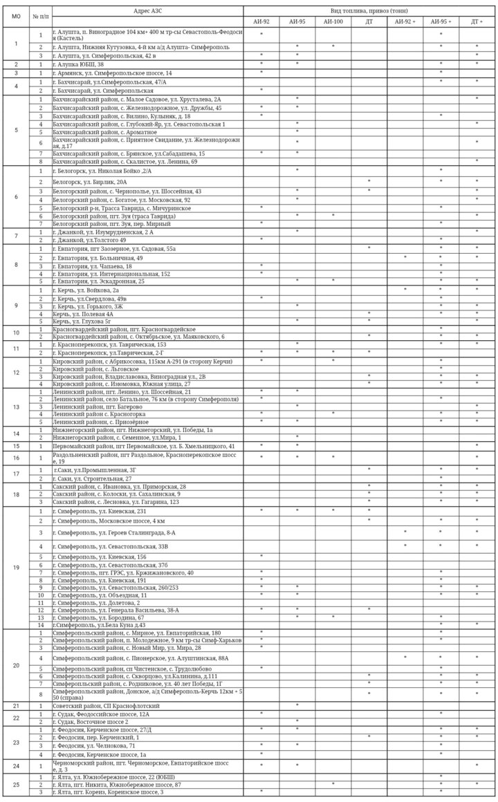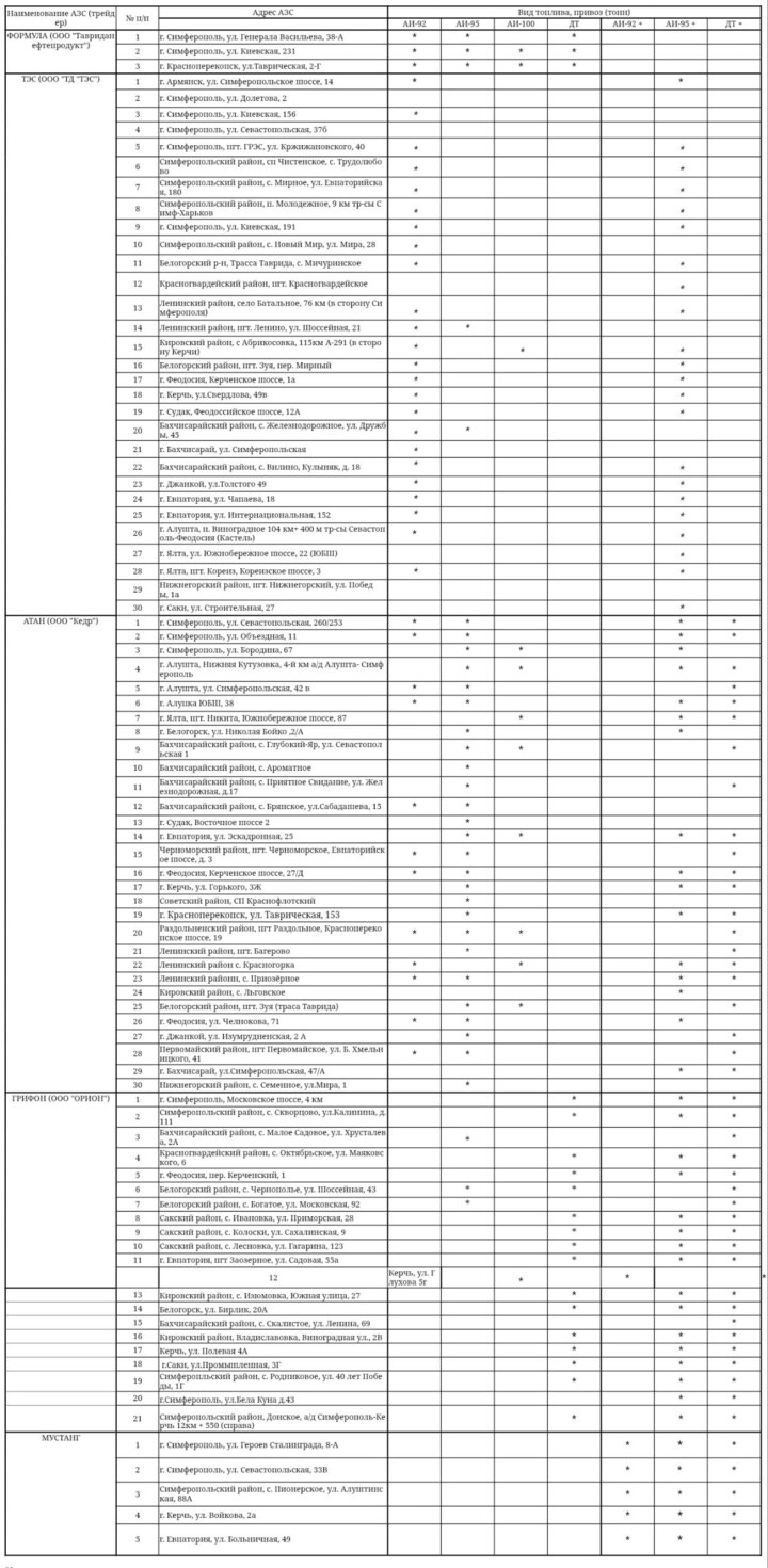 Председатель Совета министров Крыма Юрий Гоцанюк опубликовал данные, где можно заправиться топливом по состоянию на 17 октября.