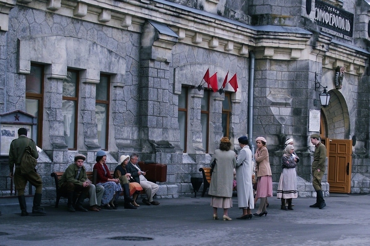 - Это как путешествие в прошлое, - делилась впечатлениями на съемочной площадке ялтинская актриса массовки Ольга Малютенко. - Надеваешь берет, пальто забытого уже фасона, туфли на массивном каблуке - и чудесным образом меняется твое внутреннее состояние.