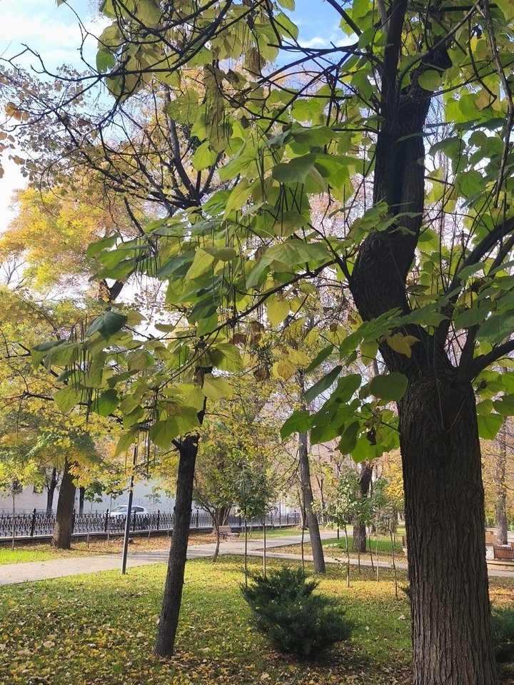 Следующее интересное дерево на нашем пути - это катальпа. Родом из Центральной и Южной Америки. В Россию впервые попала в 1730-х годах, а в Крыму появилась во второй половине XIX века. Катальпа - теплолюбивое дерево, достаточно благоухающее, является хорошим медоносом. Распускает свои листья достаточно поздно, ближе к концу мая, и, когда все уже ожило, а катальпа все еще держится голой, создается впечатление, что дерево погибло. Просто у него свой график цветения. В быту за внешний вид листьев катальпу называют деревом «слоновьих ушей и обезьяньих хвостов».