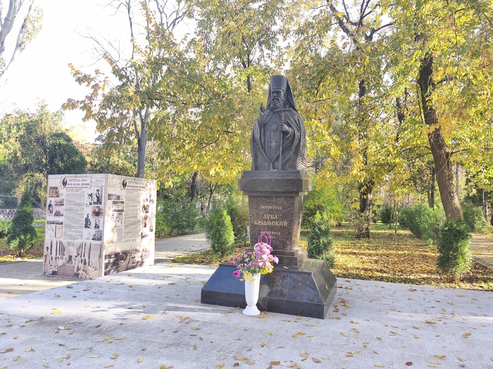 Неспроста в сквере стоит памятник святителю Луке. Здесь мы затронем историю религии и медицины, которые тесно сплелись как в фигуре святителя, так и в нашем медицинском институте.