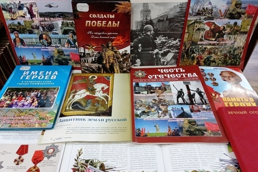 К этой знаковой дате, в рамках Года Защитника Отечества и 80-летия Великой Победы симферопольская библиотека-филиал №4 им. М.М. Коцюбинского приурочила книжную выставку «Герои ратных дел Отчизны», цитатой которой стали гордые строки русского и советского поэта Алексея Николаевича Толстого: «Родина наша – колыбель героев, огненный горн, где плавятся простые души, становясь крепкими как алмаз и сталь».