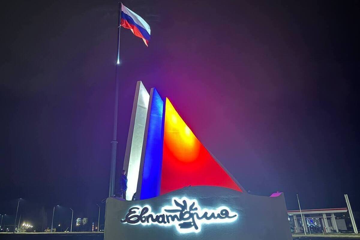 На въездной группе в Евпаторию со стороны Симферополя установили новую стелу с декоративной подсветкой, а также самый высокий в Крыму флагшток, на котором реет государственный флаг. Как сообщил глава администрации города Александр Юрьев, на территории также обустроили систему полива в зоне озеленения.