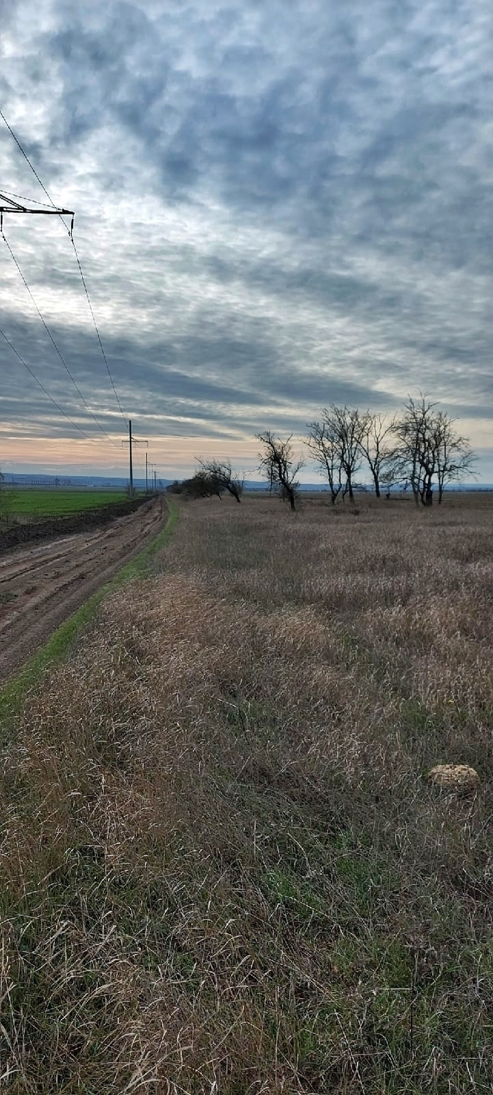 Карьер расположен между районом Аршинцево и поселком Приозерным. Добраться до него можно несколькими дорогами. Мы выбрали путь от остановки Дружба, через частный сектор. Миновав старую железную дорогу и дачный поселок, вышли к лесополосе, убегающей куда-то за горизонт. С одной стороны простиралась степь, поросшая деревцами лоха серебристого, с другой - поле. Нам нужно было идти по грунтовой дороге, огибающей поле. И это оказалось самым настоящим квестом. Грунт размок от недавно прошедших дождей и превратился в скользкое месиво, расползающееся под ногами. Подошвы кроссовок скользили по жидкой грязи будто по льду. В итоге было принято решение идти по обочине, поросшей травой.