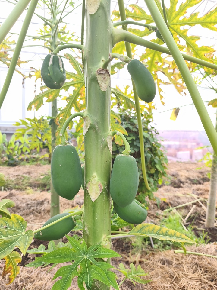 Сейчас в теплице почти 20 деревьев. За семь месяцев папайя достигла внушительных размеров - почти три метра, хотя может вырастать и до десяти, но это в оранжерее ни к чему. Фермер смеется, что хорошо ее кормил, поэтому деревце удалось. В плодоношение папайя вступает через год и регулярно дает плоды в течение 4-5 лет.