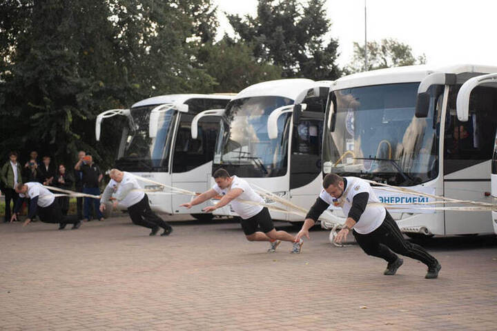 Крымский богатырь установил рекорд России по буксировке автобусов