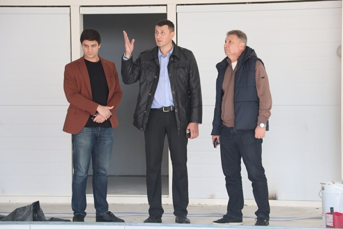 Вместе с первым заместителем министра спорта Крыма Сергеем Гниздыло и начальником отдела спорта администрации Керчи Олегом Прониным Рылов осмотрел быстровозводимое сооружение, где в настоящее время ведется монтаж систем отопления и вентиляции.