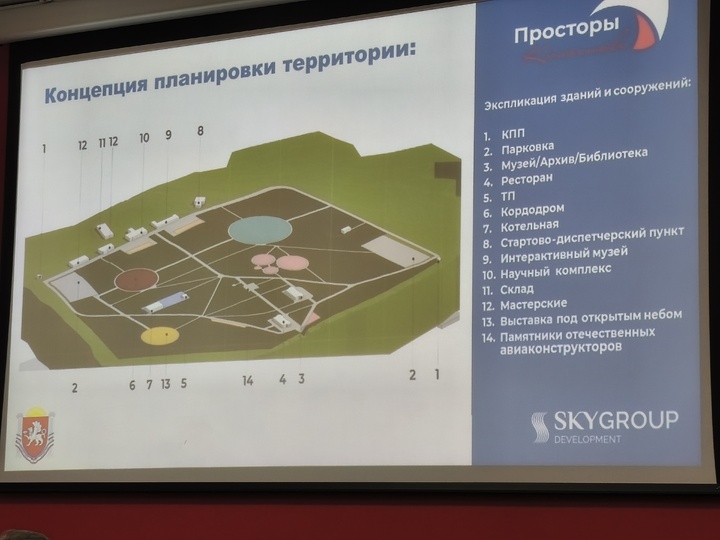 Проект подразумевает создание современной учебно-технической инфраструктуры для подготовки пилотов, операторов БПЛА и авиационных специалистов, создание юношеской планерной школы и аэроклуба, объединяющего образовательные, спортивные и патриотические направления. Формирование научно-образовательного кластера с интеграцией реабилитационных программ для участников СВО, включая адаптацию военнослужащих. Объединение существующих федераций, ассоциаций и всех заинтересованных в развитии авиации для ведения любительской и профессиональной деятельности. Проект заручился поддержкой Главы Республики Крым, Правительства РФ. Уже сформирована рабочая группа, в состав которой вошли депутаты Госдумы, ведущие федеральные ассоциации. Сделаны инженерно-геодезические, экологические изыскания, 3D-сканирование существующих строений. В планах - создать музей под открытым небом с экспонатами, начиная от первых летательных аппаратов, заканчивая тем, что летает и находится в небе и космосе сейчас.